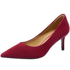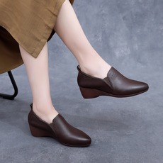 高跟鞋女2025新款春秋尖头坡跟女鞋羊皮绒面深口单鞋秋季真皮鞋子