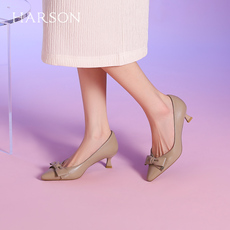 哈森不累脚小猫跟单鞋秋季新款尖头羊皮革女鞋HL247910