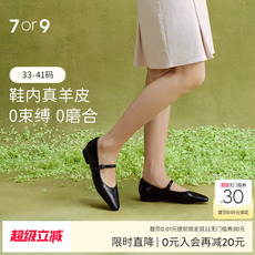 陈婧霏同款7or9女鞋玛丽珍鞋尖头羊皮一字带平底鞋通勤单鞋黑枣蜜