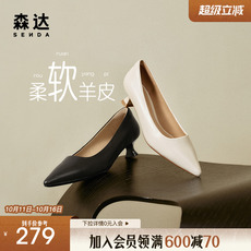 森达羊皮尖头高跟鞋简约优雅职场通勤工作鞋女鞋浅口单鞋女ZTC02