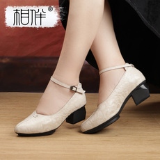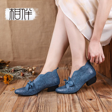 相伴真皮新款单鞋女原创旗袍手工鞋子民族风皮鞋尖头羊皮女鞋