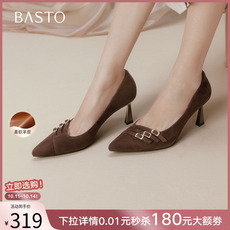 百思图2025秋季新款舒适羊皮高跟鞋浅口单鞋通勤尖头女鞋AQ352CQ5