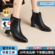 红蜻蜓高跟短靴女皮鞋秋冬季新款女鞋尖头羊皮靴子法式气质女靴
