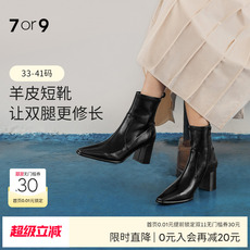7or9短靴女鞋切尔西靴秋冬款羊皮高粗跟尖头短筒靴瘦瘦靴陨石拿铁