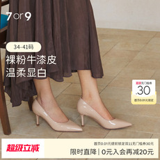 7or9裸色高跟鞋女鞋25秋冬大码尖头羊皮亮面细跟通勤单鞋婚鞋苍兰