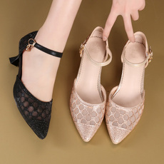 2025夏季新款网纱高跟鞋女真皮镂空百搭浅口单鞋包头透气细跟凉鞋