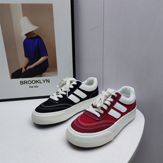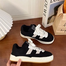 新款黑白小闪电字母底面包鞋女ins复古低帮滑板鞋百搭厚底休闲鞋