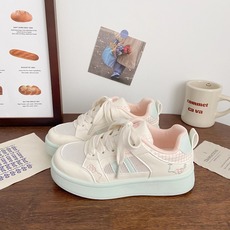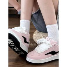 港风粉白色拼接多巴胺板鞋女ins复古高街面包鞋舒适耐磨休闲鞋子