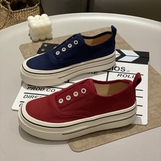 【JTJ】欧货女鞋2025新款松紧鞋带一脚蹬厚底帆布鞋时尚休闲板鞋