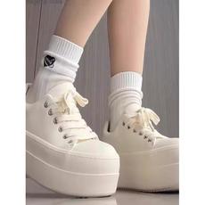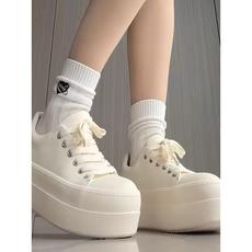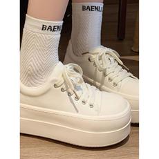 丑萌厚底内小白鞋女2025春季新款小个子百搭鞋子系带休闲板鞋