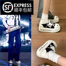 檀健次厚底女鞋开口笑帆布鞋内增高7公分休闲丑萌大头板鞋春秋款