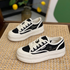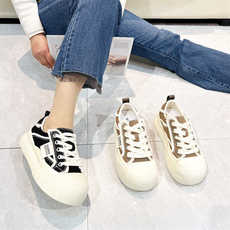 2025新款透气系带拼色帆布鞋女百搭低帮厚底时尚休闲板鞋轻便防滑