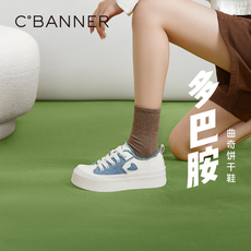 千百度厚底帆布鞋春秋气质时尚内增高板鞋休闲舒适百搭女鞋运动鞋