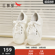 红蜻蜓休闲板鞋秋季新款女鞋增高贝壳头小白鞋厚底帆布鞋圆头系带