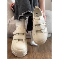轻便时尚百搭圆头厚底小白鞋女2025年秋季软底魔术贴休闲板鞋