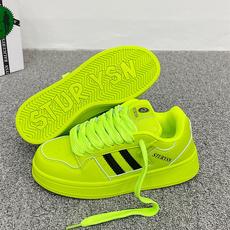 2025冬季新款原创小众低帮荧光绿厚底板鞋韩版超火学生运动休闲鞋
