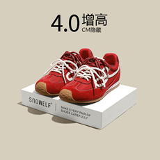 红色女鞋内增高德训鞋子2026新款爆款春季百搭轻便阿甘运动休闲鞋