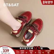 意尔康厚底红色德训鞋女2026春新款软底登山运动休闲复古阿甘鞋女
