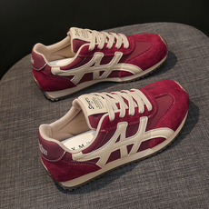 红色复古德训鞋女鞋2025秋季新款增高显瘦阿甘鞋软底轻便运动鞋子