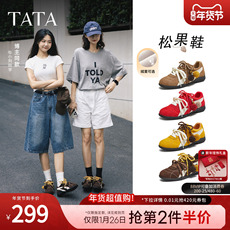 张艺凡同款TATA他她松果鞋女鞋复古德训鞋加绒运动阿甘鞋赛车鞋