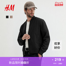 HM男装女装夹克秋季简约立领拉链简约柔软飞行员夹克1225195