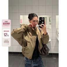 2025春新品 简约小众 立领棉质宽松休闲工装风飞行员 女夹克外套