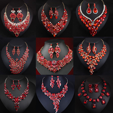 水晶短项链首饰套装女欧美夸张红宝石吊坠耳环锁骨链新娘礼服配饰