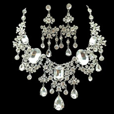 欧美奢华水晶流苏吊坠锁骨项链耳环首饰套装女新娘礼服摄影配饰品