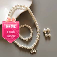 新款儿童小公主仿珍珠项链手链耳夹三件套 女童宝宝首饰套装饰品