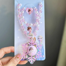 儿童项链手链套装小女孩冰雪艾莎公主串珠宝宝耳夹戒指首饰配饰品