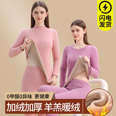 中高领保暖内衣女套装加厚加绒一体羊羔绒秋裤秋裤打底上衣棉毛衫