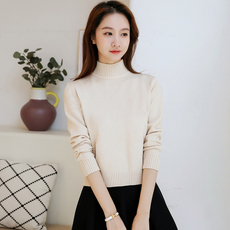 清仓特价秋季羊毛衫女纯色半高领宽松显瘦毛衣百搭针织打底衫加厚