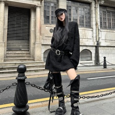 唐狮冬季黑色连衣裙女中长款无袖针织马甲裙可爱日系毛衣裙秋冬p9