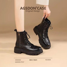 2025秋冬新款帅气英伦真皮侧拉链厚底短靴骑士靴系带中帮马丁靴