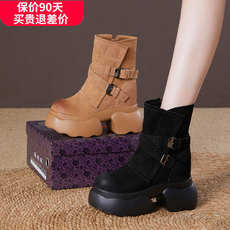 89cm内增高短靴真皮女鞋2025秋冬新款韩版松糕高跟单鞋厚底马丁靴