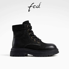 fed厚底马丁靴女秋季新款女靴黑色机车靴圆头短靴女款D0903-ZC225