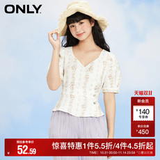 ONLY夏季莱赛尔辣妹泡泡袖牛仔短款雪纺衫女|124270006