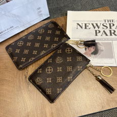 2025新款女士超薄零钱包韩版多卡位中长款手拿包老花纹拉链卡包