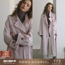 画风drawwind2026春季新款纯色天丝风衣女宽松长款单排扣翻领外套