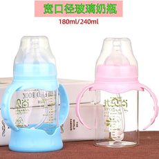 新款玻璃奶瓶防摔宽口径带吸管手柄底座防胀气婴儿新生儿宝宝用品