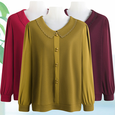 老太太夏装新款衬衫宽松中老年人女装奶奶长袖春秋衣服妈妈上衣薄