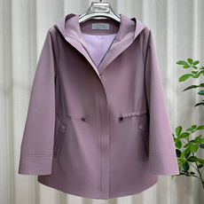 时尚连帽风衣中老年女装中长款宽松款纯色外套妈妈装春季百搭气质