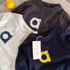 儿童字母T恤男秋季2025新款中小童韩版上衣宝宝洋气打底衫女纯棉