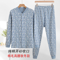 中老年女纯棉开衫秋衣秋裤套装老人全棉线衣裤宽松妈妈打底棉毛服