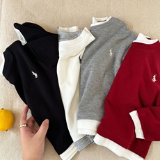 儿童加绒打底衫男冬季新款小童内搭上衣加厚宝宝撞色T恤女一体绒
