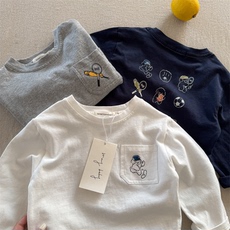 儿童T恤男长袖2025秋季新款小童纯棉上衣潮宝宝卡通打底衫女洋气
