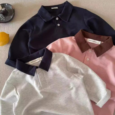 儿童T恤男2025秋季新款小童中式上衣纯色宝宝POLO领打底衫女纯棉