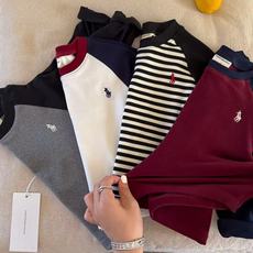 纯棉条纹polo领卫衣女春夏薄款中年妈妈宽松遮肉百搭T恤打底衫秋