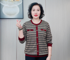 2025秋季新款时尚千鸟格圆领套头上衣洋气中老年妈妈装长袖打底衫