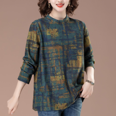 秋冬加绒加厚打底衫2024年新款时尚小衫妈妈装半高领印花气质上衣